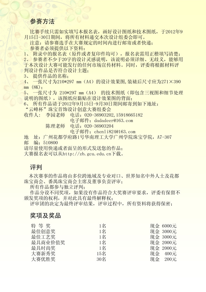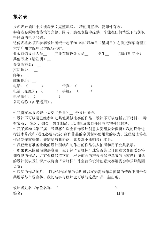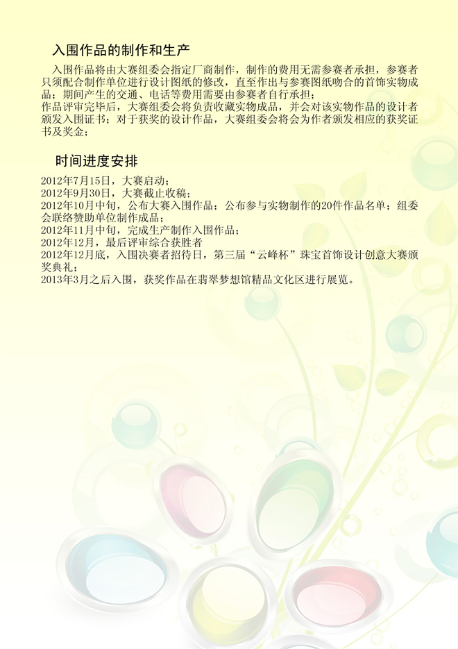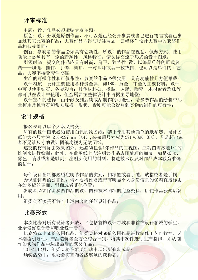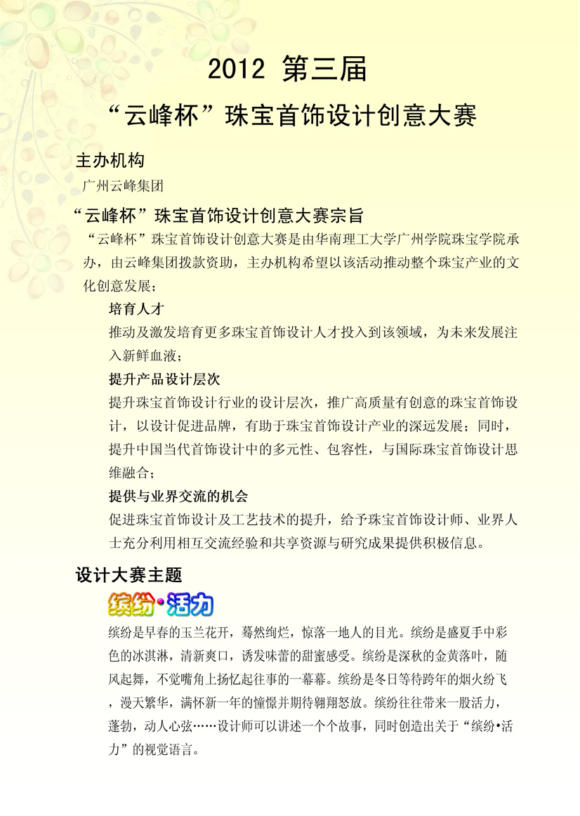 2012第三届“云峰杯珠宝首饰设计大赛”