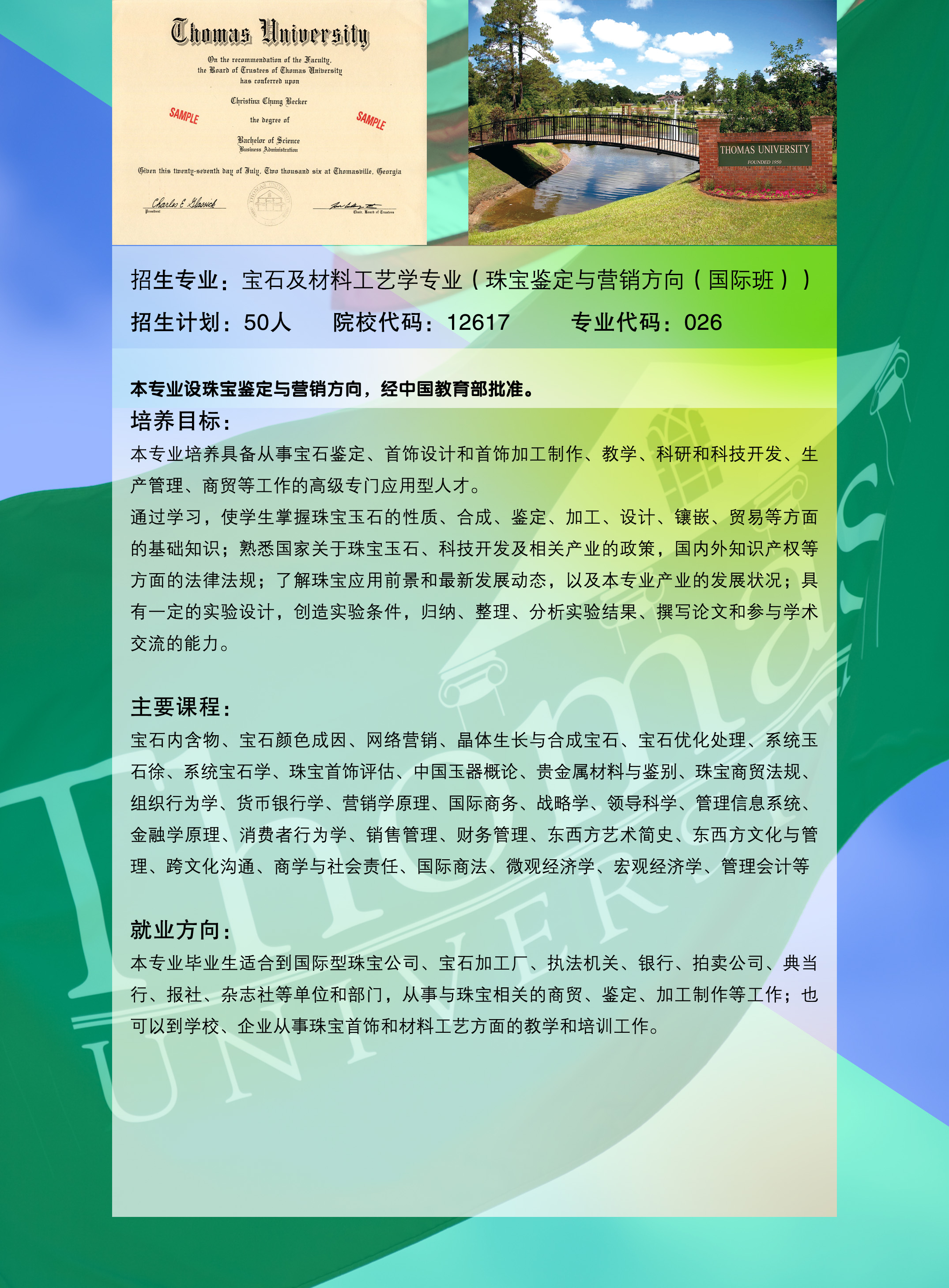 2014年宝石及材料工艺学 (国际班)招生简章