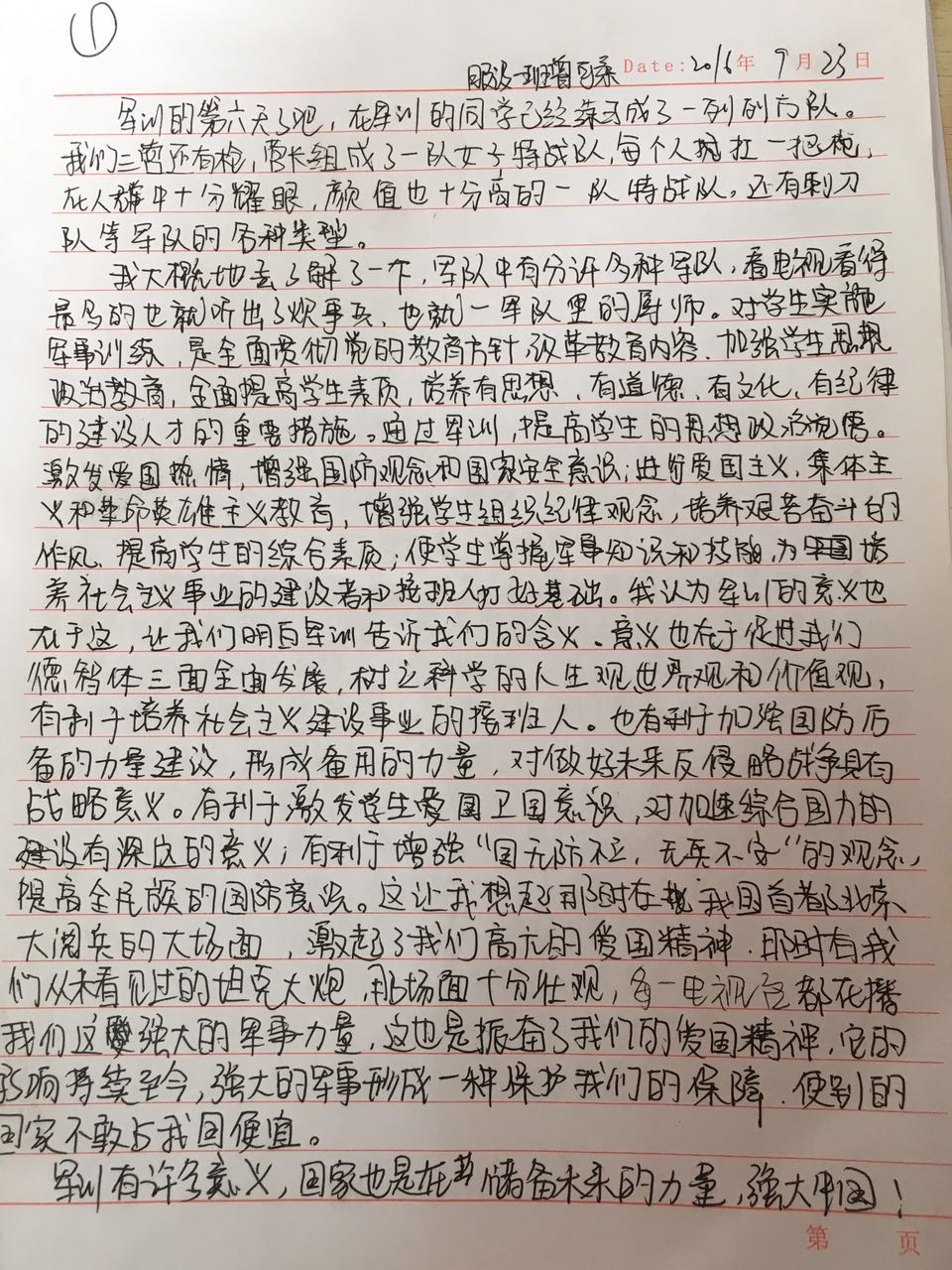 *2016级军训心得——16级服设1班 曾可柔 2016/09/25