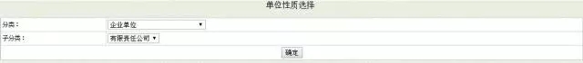 单位性质:大部分企业按照上面的选择填写,然后点确认。