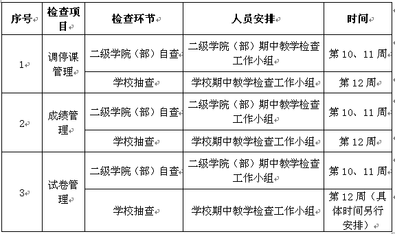 本次期中教学检查安排在本学期第10—12周。总体安排如下: