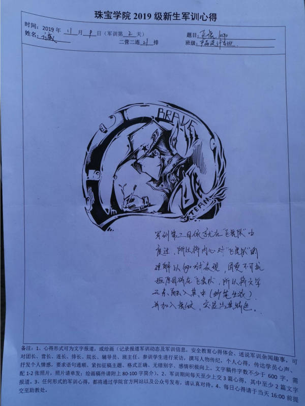 *2019级新生军训心得——19产品设计4班方威设计飞虎队logo 2019/11/09