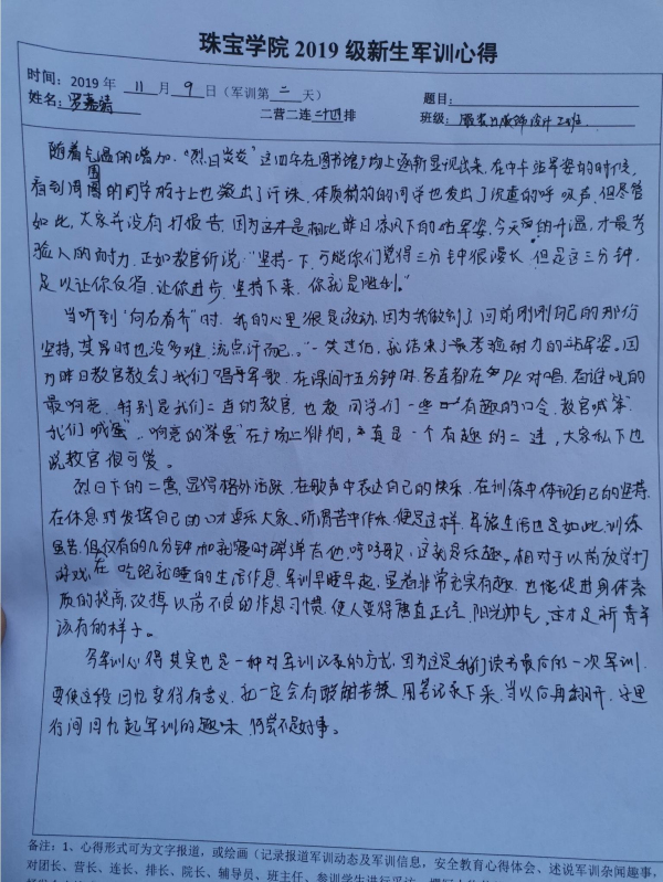 *2019级新生军训心得——19级服设3班罗嘉靖 2019/11/09