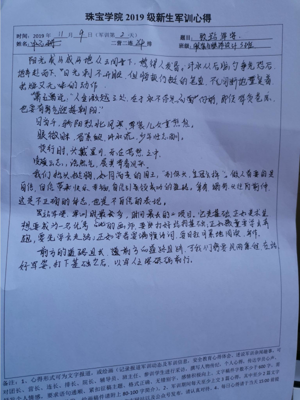 *2019级新生军训心得——19服设3班叶珊 2019/11/09