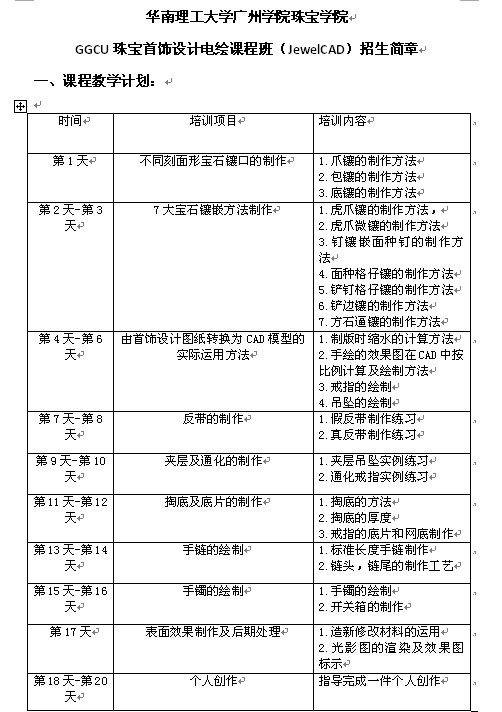 完成全部课程学员,考核成绩合格,华南理工大学广州学院珠宝学院颁发“GGCU电脑首饰设计师”培训证书。