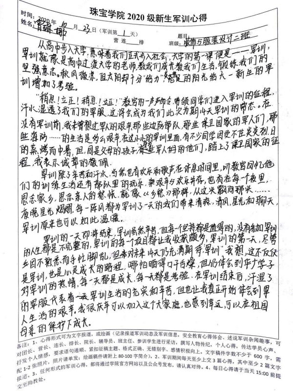 【军训特辑】2020级珠宝学院军训Day2——军训心得