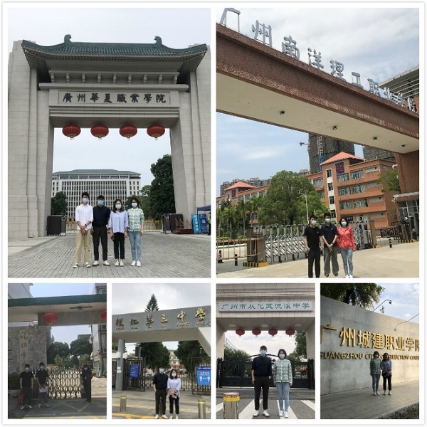 本网讯(记者 林忠源)2021年4月20日至21日,由我院教职工廖勇、刘佳、罗琳、林忠源组成的招生小组走访了从化区6所高校,其中高级中学3所,大专院校3所。