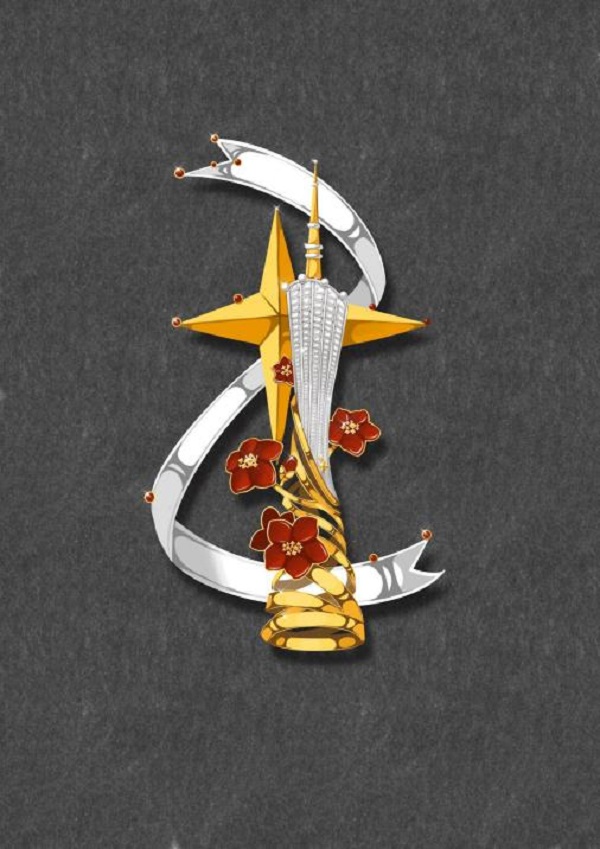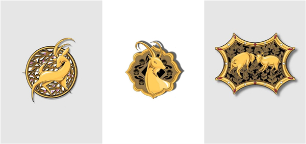 设计说明:本作品是一枚金制的胸针,其主体是一只老羊象征着羊城广州,象征着生机和生命,体现了广州人民再疫情中体现出的团结一心和坚韧不拔的精神。后面点缀着广东地区的传统木雕,雕刻着木棉花和勒杜鹃,包容着万象,依旧是一座保留着丰富民间名族风情的南粤名城。