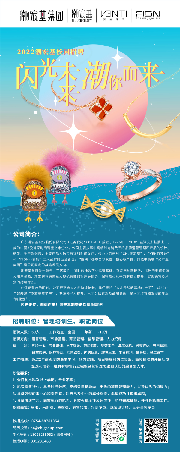 作为潮宏基的管培生,你将得到全方位体系培养及技能提升,让你成为真正潮选之子!