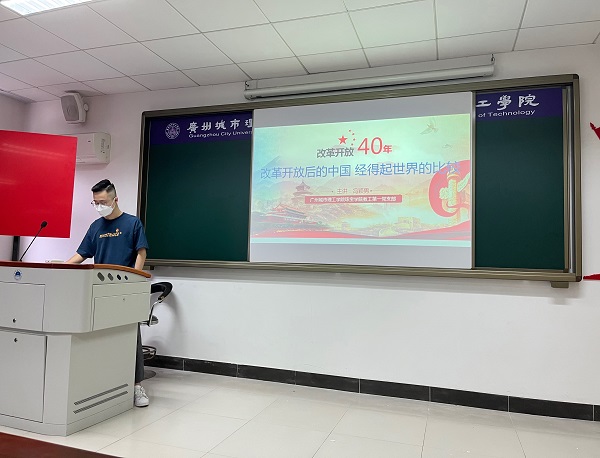 第一议题学习分享结束后,冯颖男还进行了题为《改革开放后的中国,经得起世界的比较》为题的党史学习分享,从时间、背景、国际环境、国内历史事件、改革开放40余年发展成就等方面详尽的讲述了我国这一历史上具有重要影响的历史抉择。通过解读改革开放的前因后果,探讨改革开放在中国历史发展中的地位,启发生活在盛世中的党员,要以实践见真章,坚持党的正确领导,积极为祖国发展贡献自己的力量。