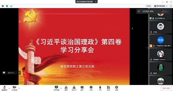 本网讯(记者 王沛炼)为深入学习宣传贯彻党的二十大精神,推动党的二十大精神为广大干部群众所了解和掌握,珠宝学院教工第三党支部于2月10日组织线上学习。会议由支部组织委员熊涛同志主持,支部全体党员参加了本次学习分享会。