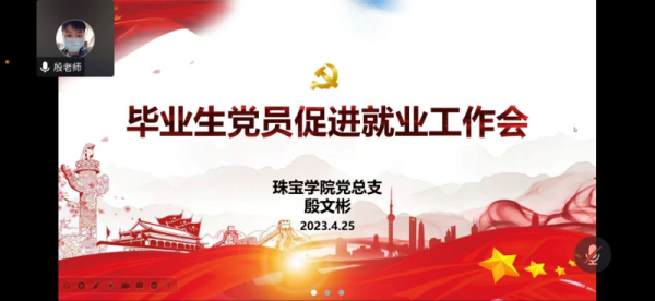 本网讯(记者 文嘉俊)4月25日下午,珠宝学院学生党支部通过腾讯会议的形式召开了毕业生党员就业工作会。这是珠宝学院本学年针对2023届毕业生召开的就业工作系列之一。学生工作办公室副主任、就业专员殷文彬、学生党支部书记文嘉俊以及全体毕业生党员参加了会议,会议由文嘉俊主持。