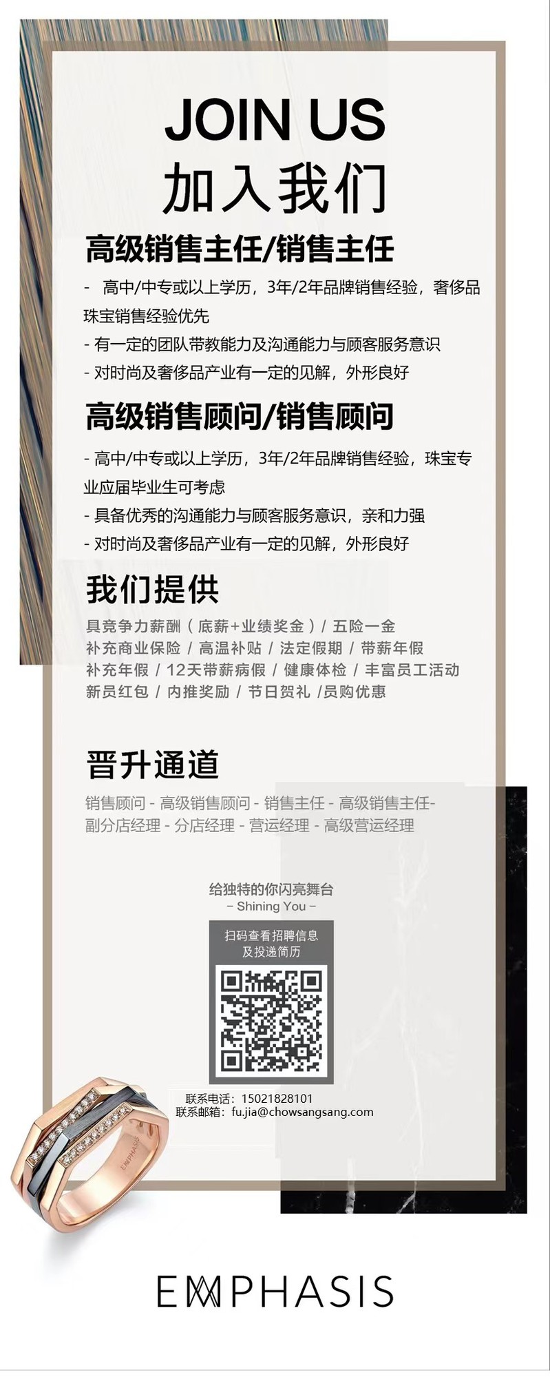 周生生旗下子品牌EMPHASIS,深圳区域招聘
