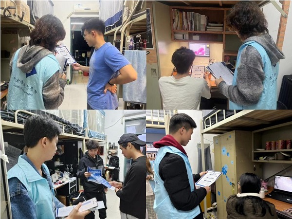为进一步扩大防诈宣传覆盖面,共建平安、无诈校园,由学院老师与团委学生会工作人员组成的防诈小分队在悬挂好防诈宣传横幅后,深入学生宿舍开展防诈骗宣传教育活动。宣传过程中,防诈小分队向同学们剖析讲解典型的诈骗案件类型,并结合相关现实案例,揭露各类诈骗方式的新变化、新特点,提醒同学们切勿心存侥幸。