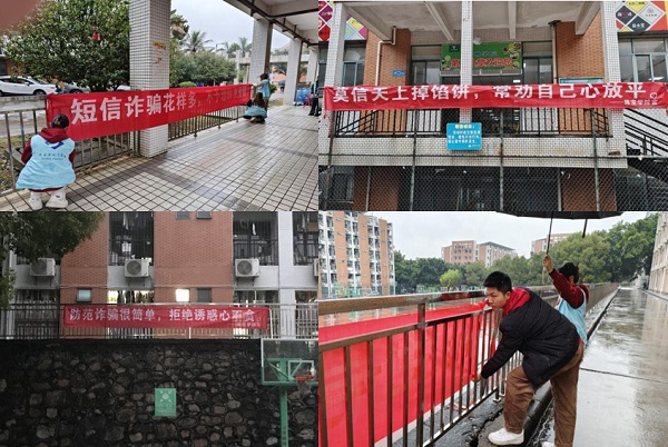 为了进一步提高同学们防诈反诈意识和自我保护能力,切实维护同学们的财产安全,最大限度压缩犯罪空间,有效减少诈骗案件发生,珠宝学院主动出击,精心制作防诈宣传横幅,学院老师与团委学生会的工作人员一起将其悬挂在学生宿舍的出入及活动区域。防诈横幅的悬挂产生了良好的宣传效应,让过往的同学们一目了然,在潜移默化中提高防范诈骗的意识,起到提示和警醒的作用,并营造了浓厚的防诈宣传氛围。