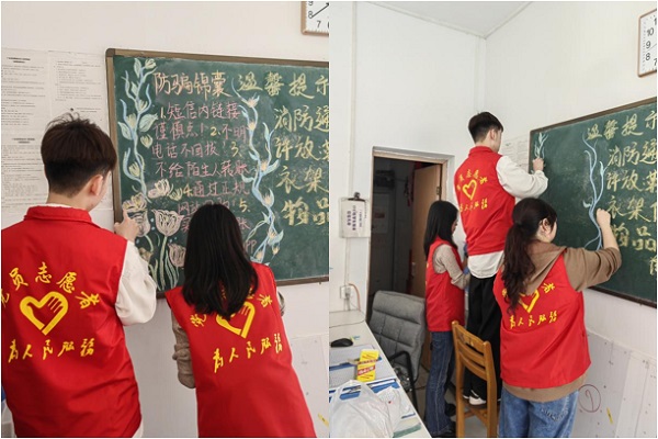 党员志愿者画防诈骗板报(丘颖欣 供)
