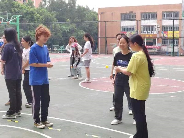 “小球过河”比赛,考验的是参赛者的耐心和稳定性。比赛过程中,参赛人员绷紧双手,稳定身体,通过两根绳子将乒乓球小心翼翼地运到杯子中。尽管时不时因为手抖、技巧掌握不到位等情况导致乒乓球掉落,引来其他参赛者及围观者笑声一片,但参赛人员兴致不减,乐在其中。活动现场,一阵阵欢笑声、加油声弥漫在C8篮球场的上空,让整个活动氛围显得十分热烈。