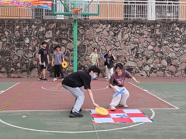 欢乐“三子棋”比赛不仅仅是体力的比拼,更是脑力的综合比拼。参赛者需要在九宫格棋盘上快速落棋,争取在对手之前连成三子。比赛时,参赛者神情专注、身手矫捷,在棋盘上精心布局、你来我往、步步为营,犹如行兵布阵,在赛场上一决高下。每当棋盘上的棋子连成一条线时,现场同学们都热烈欢呼,每个人都在比赛中玩出了“精气神”和“年轻态”。