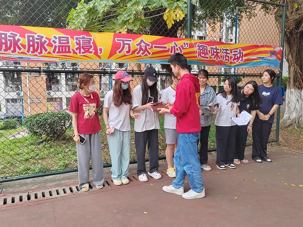 本网讯(记者 江思娴 李运成)阳春三月,春暖花开。为给珠宝学子提供一个交流互动、增进友谊的重要平台。3月24日,珠宝学院在c8篮球场开展第十三届宿舍文化节之“脉脉温寝,万众一心”趣味活动。本次趣味活动设置了“小球过河”、“欢乐三子棋”、“蒙眼互打”三个比赛,极具趣味性、参与性、互动性。