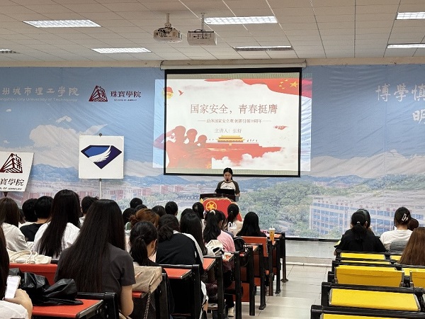 学院团委书记梁冰讲话(珠宝学院团委信息中心 摄)