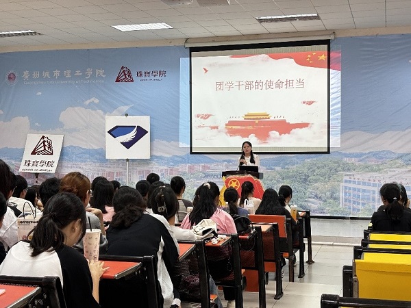 本网讯(记者 张舒)为进一步加强团学组织建设,提升学生骨干综合素质和工作效能,4月16日,珠宝学院团委在A7-101召开团委学生会学生骨干培训会。学院党总支书记刘喜锋、学院团委书记梁冰、各年级辅导员及学院团委学生会全体成员等近100人参加会议。