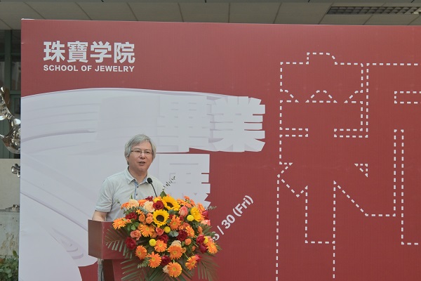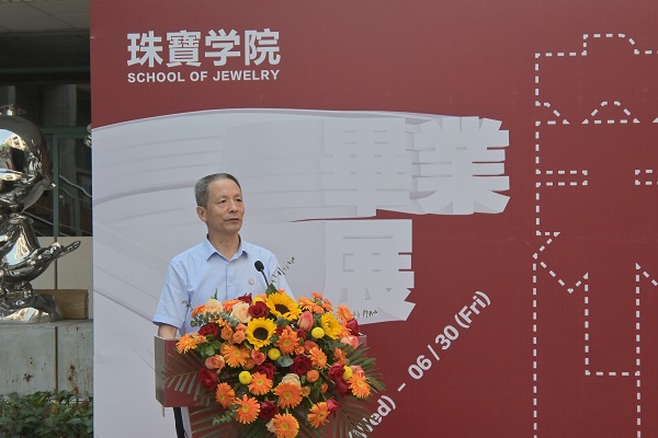 尚启超在开幕式致辞中首先分享了一段自己近期在食堂陪餐过程中,与珠宝学院学生的温馨互动。他对三位来自服装设计专业的应届毕业生均找到自己心仪的工作感到十分欣慰,同时深切体会到学校应用型人才培养的成效。接着,尚启超对珠宝学院近年来在教学、科研及实践创新方面所取得的丰硕成果给予了肯定,特别是对即将开幕的2024届毕业设计作品展充满了期待。他指出,这一系列精彩纷呈的作品不仅是学生们四年学习的结晶,更是对学院创新教育模式和应用型人才培养成果的检阅。他鼓励同学们在未来的道路上要主动适应,拥抱健康,拥抱知识,用激情诠释创新,用奋斗追逐梦想,用青春书写辉煌。也希望珠宝学院抓住机遇,在高质量发展中实现教学、科研齐头并进,培养出更多高素质的设计人才,为粤港澳大湾区乃至国家的设计行业做出更大的贡献。