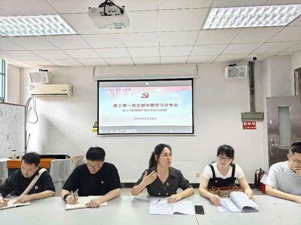 本网讯(作者 潘美丽)为推动广大党员、干部做到学纪、知纪、明纪、守纪,强化遵守纪律的自觉,以严明的纪律确保全党自觉同以习近平同志为核心的党中央保持高度一致,统一思想、统一行动,知行知止、令行禁止,形成推进中国式现代化的强大动力和合力。5月28日下午,珠宝学院教工第一党支部在A7-407召开《中国共产党纪律处分条例》(以下简称《条例》)专题学习研讨会。党支部书记潘美丽主持会议,支部全体党员参加研讨会。