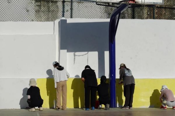 7月7日,在墙绘工作之余,突击队还对周边群众做出采访,积极听取当地民众的意见,其中,一群常在篮球场进行娱乐的小朋友们表示:“希望他们的篮球场能够色彩更丰富,更有生机。”同时还表达了想参与到此次墙绘活动中的意愿。在相互交谈中,突击队增进了与村民之间的感情,也感受到了这次活动所带来的价值,更激发了成员们的斗志,大家都希望通过自己的努力为当地村民以及小朋友们的生活中多增添一份色彩。在突击队队长李素莹的带领下,项目稳步进行。路虽远,行则将至;事虽难,做则必成。习近平总书记指出:“新征程是充满光荣和梦想的远征,没有捷径,唯有实干。”历史不会辜负实干者,青昭阳和实践队始终谨记这一点,用实际行动渲染青春,用脚踏实地追逐未来。