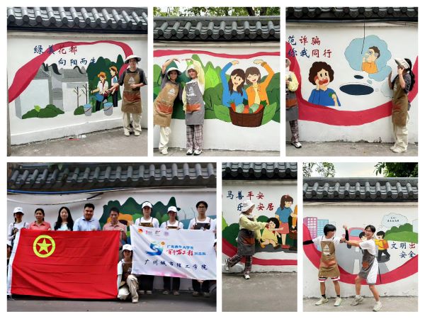本网讯(记者 梁文静 张舒)为深入贯彻国家乡村振兴战略的宏伟蓝图,引导广大青年学子投身于“百千万工程”的火热实践之中,7月7日至7月17日,珠宝学院“以青春之笔,共绘美丽马溪”实践团前往花都区秀全街道马溪村开展中部区域“农房风貌美化提升”工作,经过实践团成员们十几天的辛勤付出和不懈努力,本次墙绘活动圆满落幕。