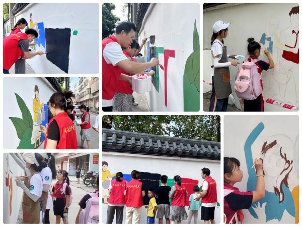确定墙面绘制主题后,实践团成员进行图稿设计并与村委对接,进行多轮修改完善,以确保能够呈现优秀的作品。墙绘工作正式开展后,实践团成员分工明确,默契十足,全身心投入到墙绘艺术的创作中,用身上携带着的画笔和颜料,轻轻描绘图案的轮廓。在墙绘的过程中,他们不惧火辣的酷暑,无畏绵绵的细雨,怀揣着青春的热血与活力,把心中的满腔热忱挥洒在马溪村的墙壁上,共同绘制出一幅幅美丽的画卷。这些画卷生动展现了乡村的全新面貌,为乡村振兴注入了强劲的动力。