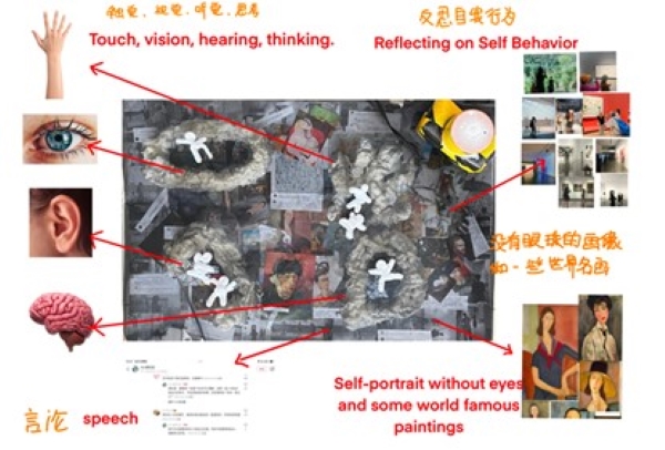 学生谢明丝的作品《我的视角》表达了以主观的想法深入剖析作品的含义,通过多角度多维度地思考探究事物的本身,进而记录身边美好的事情。经过为期一个星期的课程和实践,她感受到不同的学习方式,学会主动思考。让她印象深刻的是,Atkin教授告诉她“这是你的作品,你可以以任何形式大胆地去制作。”