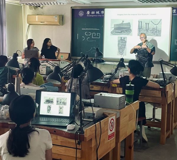 9月2日,Atkin教授进行了拼贴艺术的理论讲授,同学们学习兴趣浓厚,学习热情高涨,认真记录知识,积极与Atkin教授沟通交流,为后续课程实践考察打下扎实基础。9月3日,师生一行前往广东省博物馆和白鹅潭大湾区艺术中心进行文化考察,采用速写的形式记录灵感,思考如何将废弃物品转化为艺术表达的媒介,并以此为主题进行艺术创作。