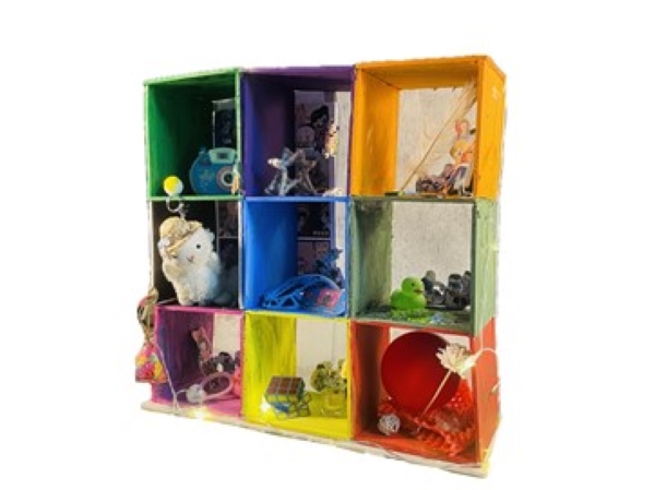 李海浪同学的个人创作《记忆》,这个作品象征通往童年的时光隧道,让她瞬间穿越回那个无忧无虑、充满幻想的世界。该学生认为这门课程对她说,无疑是一次启迪与推动,不仅让她了解废弃物品的再生价值,还学会了如何将这些材料融入她的设计中,每一种材料都为她提供了新的创作思路。