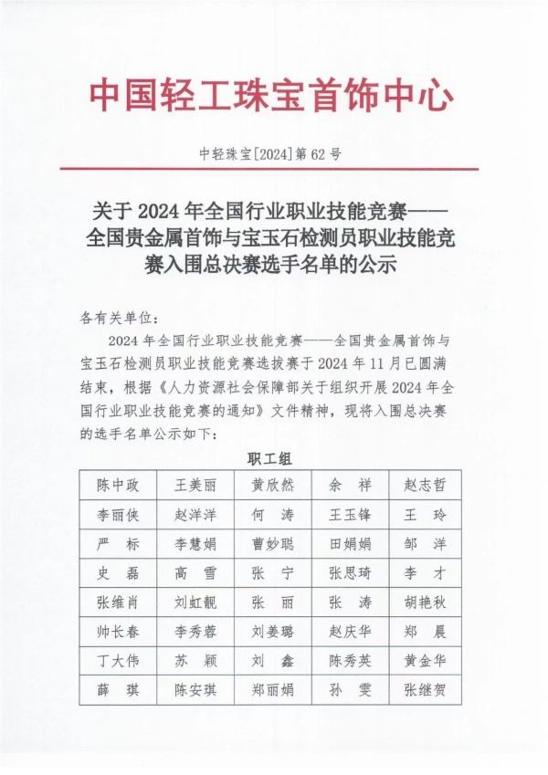 据最新消息,2024年全国行业职业技能竞赛——第七届全国珠宝玉石检测制作职业技能竞赛的决赛将于12月在安徽举行。届时,七个选拔赛区将分别从职工组和学生组中选拔出60名选手参加决赛。比赛将通过理论考核和实操竞赛两个环节进行,最终根据综合得分排名决出优胜者。