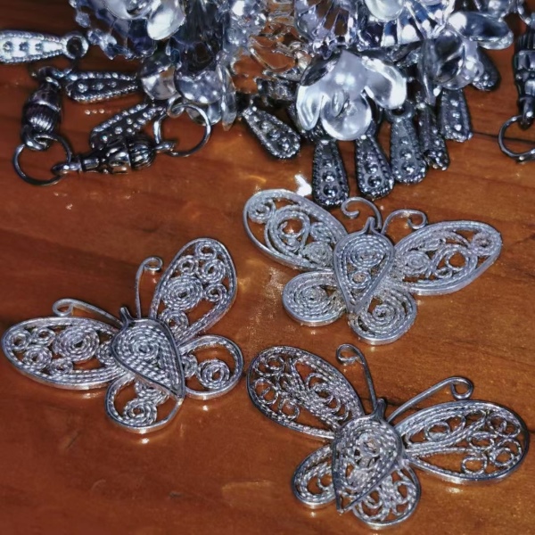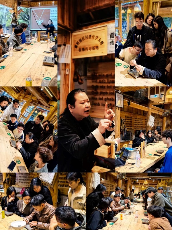 11月17日,在西江苗族银饰传习馆,学生们在非遗匠人潘仕学老师的指导下,深入学习了花丝工艺的基础知识以及填丝、掐丝和定型等技法,并进行了创作实践。通过与非遗传承人的交流,学生们进一步了解苗族文化的独特魅力和银饰传统制作过程,不仅感受到了非遗技艺的魅力,也体会到了文化传承的重要性。