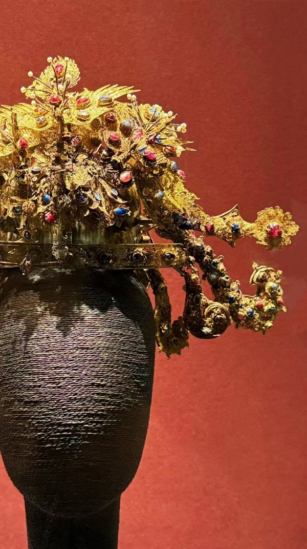明朝嵌宝石五翟金冠 (李园 供)
