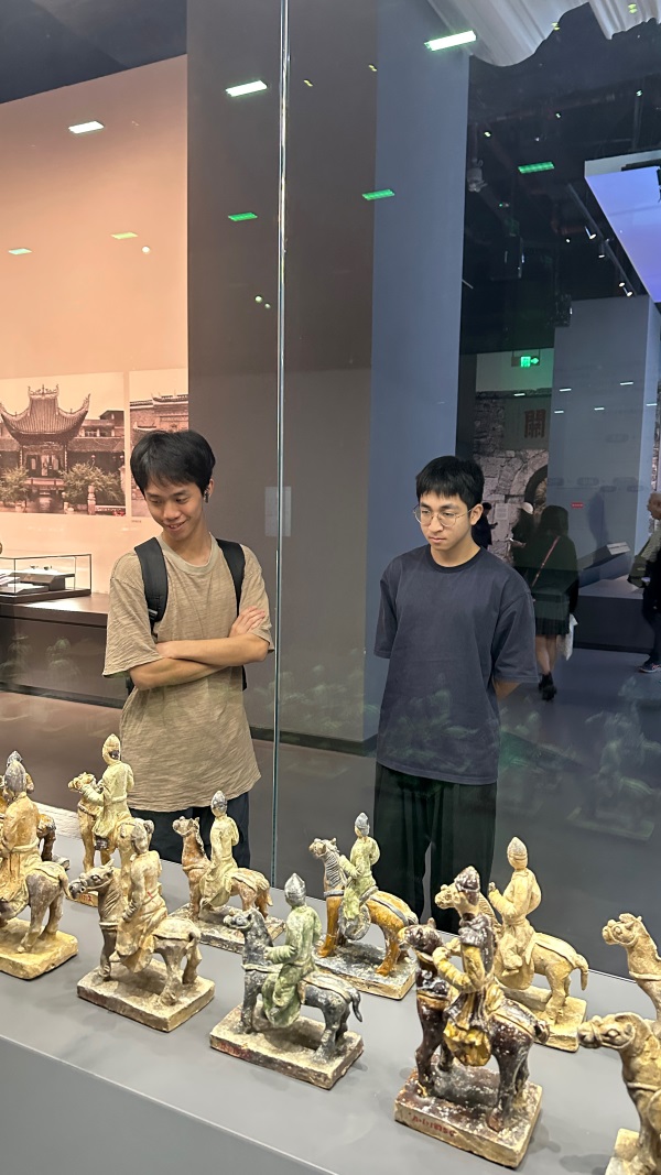 11月16日,学生们参观了贵州省博物馆新馆,其中包括能够容纳27米长龙舟的特色展厅和具备贵州多元文化的民族展区。一件明朝嵌宝石五翟金冠特别引起了学生们的兴趣,这件金冠以其精美的宝石镶嵌和复杂的工艺设计,展现了明代珠宝技艺的高峰。学生们在这里不仅感受到贵州丰富的历史文化,还从博物馆珍贵展品中汲取了设计灵感,为后期参加首饰设计大赛等实践创作提供更多参考元素。