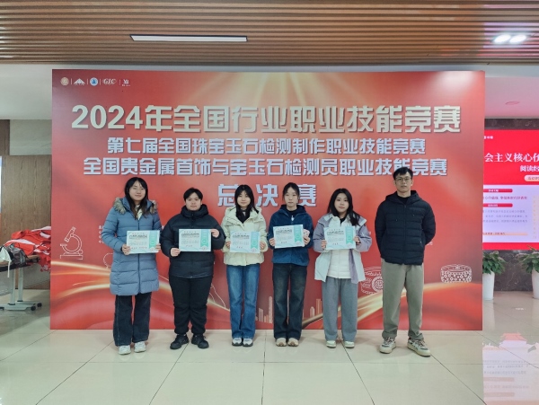 本网讯(记者 王沛炼)2024年全国行业职业技能竞赛——第七届全国珠宝玉石检测制作职业技能竞赛暨全国贵金属首饰与宝玉石检测员职业技能竞赛总决赛于12月10日在安徽合肥圆满结束。珠宝学院的参赛师生经过层层选拔,从广东省选拔赛中脱颖而出,共有1名教师和4名学生成功入围全国决赛,并在决赛中表现突出,取得良好成绩。