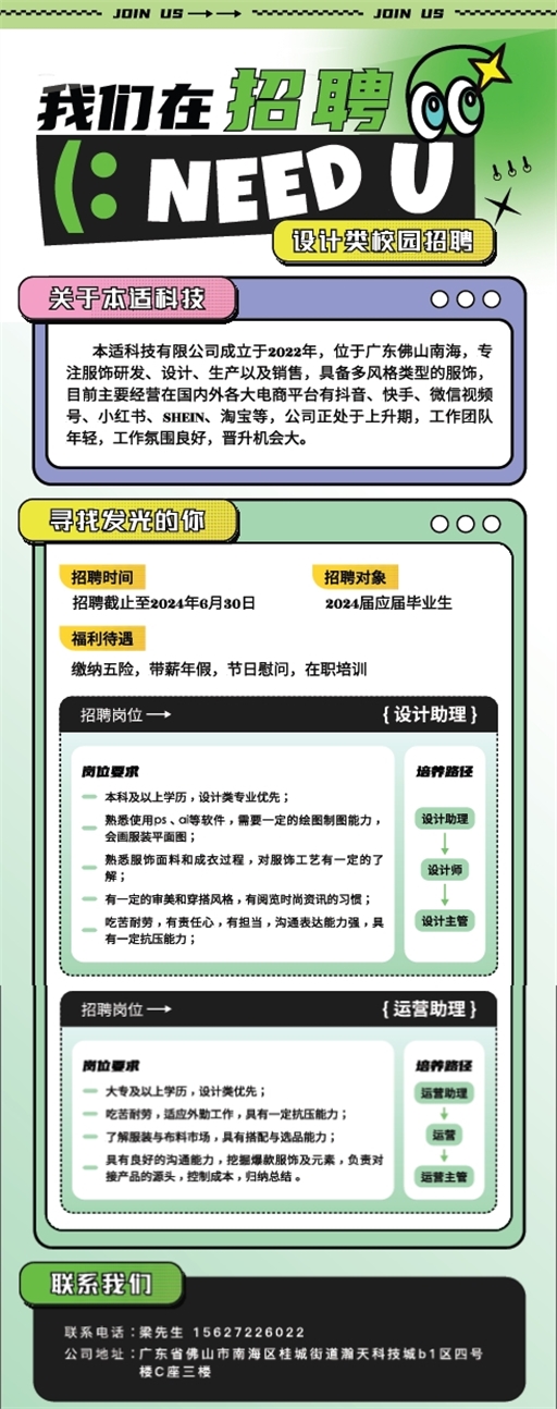 公司名称:本适科技有限公司(服装企业招聘)