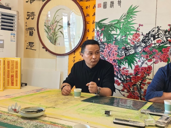 在参观交流环节,李大师深情回顾了自己的艺术生涯。他特别提到,从最初自费办展到如今受邀在广东四大名园举办展览,这一路走来共举办了20次个人艺术展,即将举办第21、22次个人艺术展,其中将要在中山纪念堂举办的第22次个展具有里程碑的意义。“这些展览都得到了国家公共文化机构的大力支持,让个人创作真正成为了公共文化的一部分。”李大师感慨道。