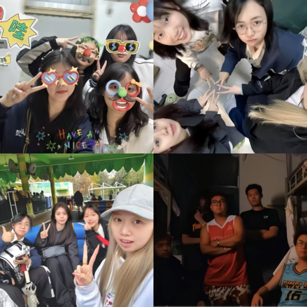 在趣味合影比赛中,同学们以宿舍为单位,通过创意造型、趣味道具或主题场景,记录下室友间的欢乐瞬间。一张张生动的照片,不仅体现了宿舍成员间的默契与活力,更成为青春时光里珍贵的记忆。