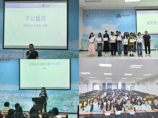 本网讯(记者 李运成 岑骏杰 邓咏欣)4月18日,珠宝学院2024-2025学年第十四届宿舍文化节表彰大会在A7-101圆满举行。此次表彰大会通过对在宿舍风采比赛和文明宿舍建设中表现优异的宿舍集体和先进个人进行表彰,鼓励各位同学营造积极向上的宿舍文化氛围,其中在宿舍风采比赛中获奖的宿舍共43间,被评为院级文明宿舍的共52间。