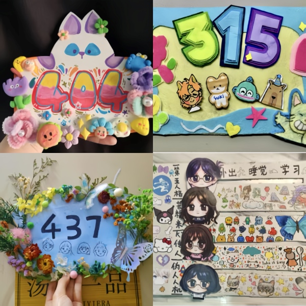 门牌设计比赛参与宿舍14个,参与人数56人。鼓励学生将艺术特长融入生活的巧思,各宿舍围绕成员性格或房间号主题,以创意设计展现独特个性,小小门牌成为宿舍文化的“微名片”。