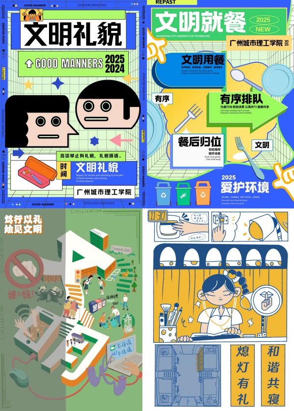 在作品中,有的同学描绘了校园中师生之间相互尊重、礼貌待人的温馨场景,传递出文明礼貌在日常生活中的重要性;有的同学展现了对宿舍文明的要求,呼吁大家从自身做起,践行文明行为等。