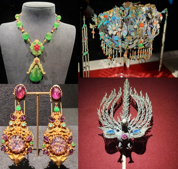 在参观过程中,师生们深深地沉浸在展品所承载的文化厚度中。支部党员教师从一件18世纪欧洲钻石胸针的切割工艺谈到现代珠宝的创新传承,引发学生对“技艺革新与历史延续”的思考;学生团员则被明代玉雕的细腻纹饰所震撼,直言“每一道刻痕都是匠人对美的执着”。展览尾声,大家围聚在“东西辉映”展区,对比中西珠宝艺术差异,共同探讨文化互鉴对当代珠宝的启示。不禁感慨,这些珍宝不仅是技艺的巅峰,更是文明对话的桥梁。