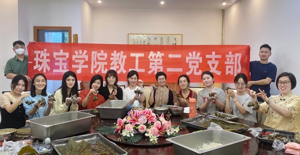 本网讯(记者 戴玲)为深入学习贯彻习近平新时代中国特色社会主义思想,弘扬中华优秀传统文化,增强党组织的凝聚力和战斗力,在端午佳节来临之际,珠宝学院教工第二党支部联合产品设计专业教师,于2025年5月29日下午在学校第三食堂开展了以“粽叶裹情传党恩,端午共筑幸福梦”为主题的党日活动。此次活动将传统文化与党建工作深度融合,取得了良好成效。