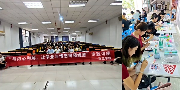 本网讯(记者 严志洋 关咏仪)6月13日为缓解学生压力,关注其情感需求,珠宝学院成功举办了以“与内心和解,宿说心语”为主题的面具彩绘活动,共吸引了90多位同学参与。为给同学们提供一个放松身心、表达情感的艺术平台,学院党总支副书记姚勇和辅导员老师及同学们一起聆听“与内心和解,让学业与情感同频绽放”专题讲座,结束后,探索心灵与艺术的融合之美。