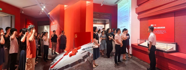 理论学习与党课分享结束后,师生前往国家版本馆广州分馆参观。馆内文化厚重深邃,大家认真聆听讲解,感受版本文化的力量,体会中华文脉的源远流长与博大精深。参观过程中,姚勇带领全体党员师生在庄重的氛围下重温入党誓词。铿锵有力的誓言回荡在馆内,表达了党员师生们对党的无限忠诚与党员教师为教育事业奉献终身的坚定信念。