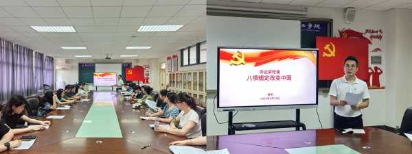 活动伊始,党员师生齐聚A7-212会议室,开展第一议题学习。学习围绕《习近平文化思想学习纲要》中“守护好中华民族的文化瑰宝——关于加强文化遗产保护传承”部分展开。学院党总支副书记姚勇在领学中讲到,中华民族历史悠久、文化灿烂,文化遗产承载着民族基因和血脉,是中华文明特性的有力见证。大家要深刻认识到敬畏历史、敬畏文化、敬畏生态的重要性,结合此次国家版本馆的学习,加强对文化瑰宝的守护与传承。随后,姚勇以“八项规定改变中国”为主题讲党课。他指出,八项规定实施后,党风政风焕然一新,彰显了中国共产党自我革新的勇气与决心,这股清风也吹进高校校园,影响着党员干部的言行。党员教师张晗嫣表示,将严格遵守中央八项规定精神,不搞形式主义,不浪费教学资源,努力营造风清气正的校园环境;民主党派九三学社成员杜霞老师称深受触动,更加坚定了与中国共产党同心同德、同向同行的信念,将立足岗位建言献策,充分发挥参政议政、民主监督作用。会上,与会师生分享了中央八项规定实施以来身边的变化,纷纷表示真切感受到党和国家整治官僚主义、形式主义的决心,老百姓的获得感更加实实在在。
