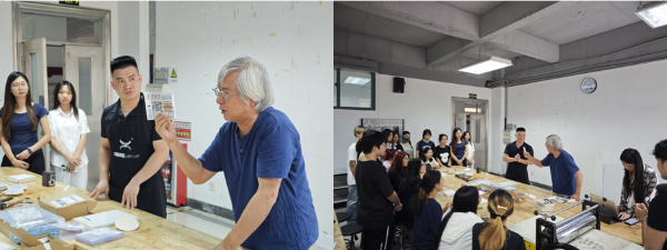 活动伊始,院长亲自参与示范环节,展示了凸版创作的基础技法。院长的参与不仅体现了学院对艺术实践教育的高度重视,更以其平易近人的方式瞬间拉近了领导与学生的距离,营造出轻松、包容的创作氛围,为后续活动奠定了温暖而专业的基调。